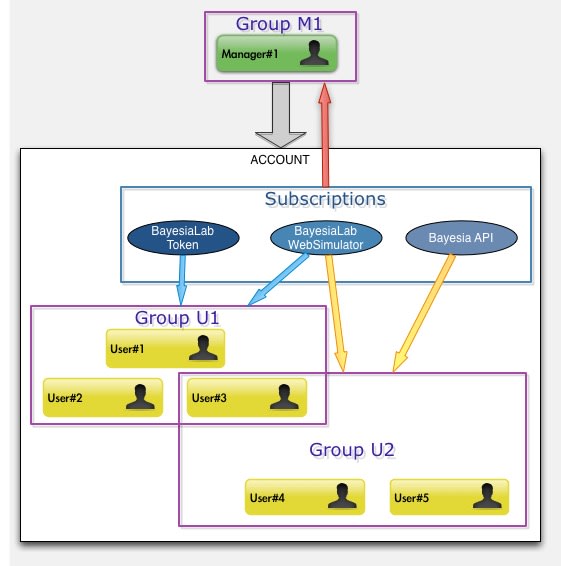 - Subscriptions are “owned” by Accounts and refer to term-based licenses to Bayesia’s software. Managers can authorize Groups to utilize the Subscriptions of an Account.