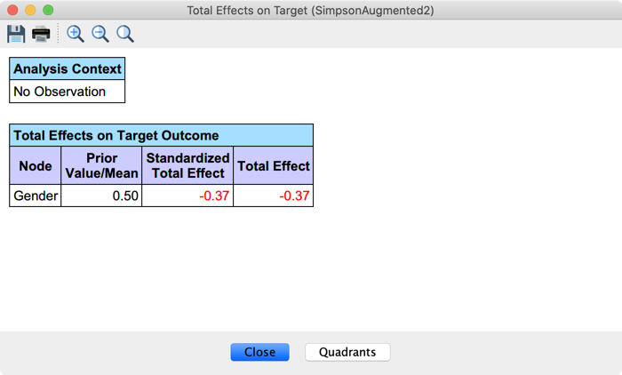 So let us start with Gender. We select the node, go to Menu > Analysis > Report > Target > Total Effects on Target