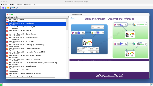 - The BayesiaLab software installed on your computer is also the delivery mechanism for all the course materials via its integrated Learning/Media Center. You simply open BayesiaLab and have all elements of the course at your fingertips.