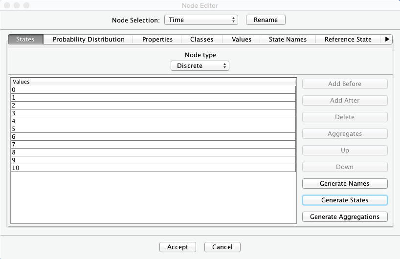 By clicking on the Generate States button, we create the states we need for our purposes. Here, we define 11 states, starting at 0 and increasing by 1 step: