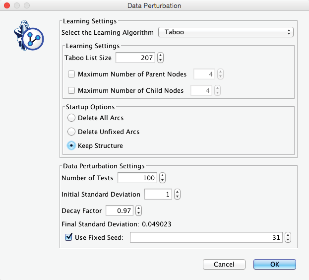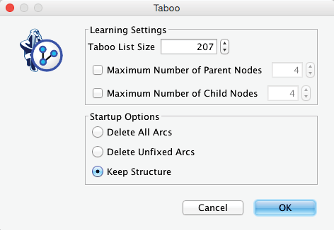 and check the option Keep Network Structure in the Taboo Learning dialog box.