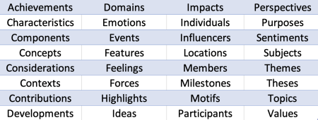 - Use the Dimension Elicitor, employing a broad array of keywords like “Achievements”, “Characteristics”, “Components”, “Milestones”, and many more, to conduct an exhaustive analysis of the book (see the exhaustive list of keywords below). Set the General Context to “Sergio Leone Movie”.