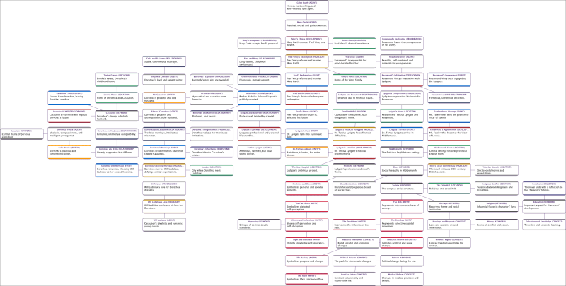 Immerse yourself in George Eliot’s “Middlemarch,” a literary masterpiece that profoundly looks into 19th-century provincial life in England. Leveraging the capabilities of Hellixia, our journey into this classic will be navigated through semantic networks, dividing our exploration into two distinct stages: