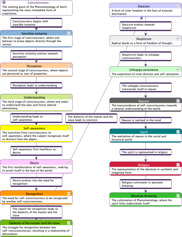 Our approach to analyzing The Phenomenology of Spirit marks a significant evolution compared to our previous analyses, such as those conducted on Hobbes and Locke.
