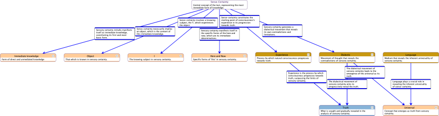 While examining the generated graph, we identified a significant inconsistency: the causal relationship between “Dialectic” and “Sense Certainty” appears to be reversed compared to the content of the comment associated with the arc.