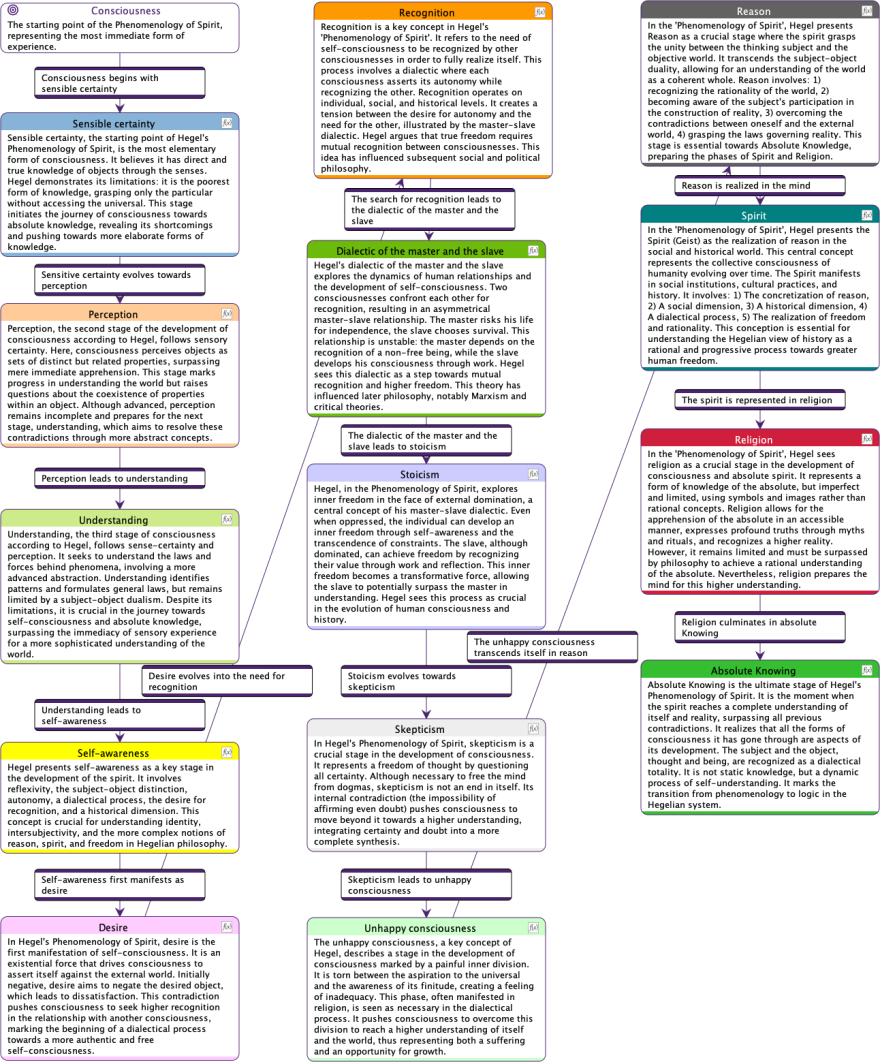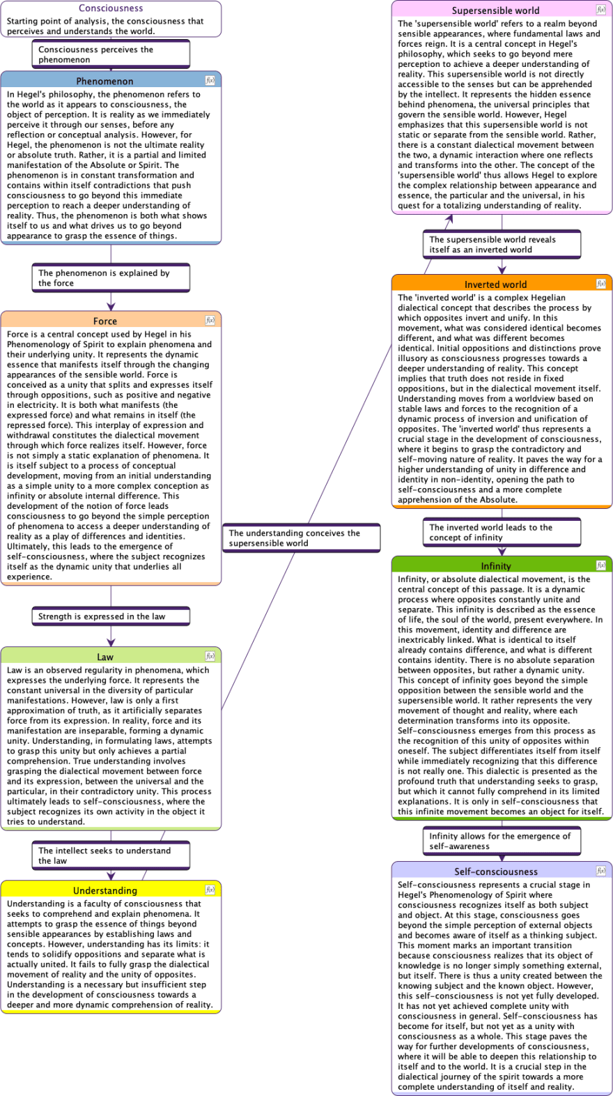 This ability to expand and condense comments offers remarkable flexibility in our exploration of the Phenomenology of Spirit. When a more in-depth analysis is required, we can develop these comments to access detailed and contextualized explanations.