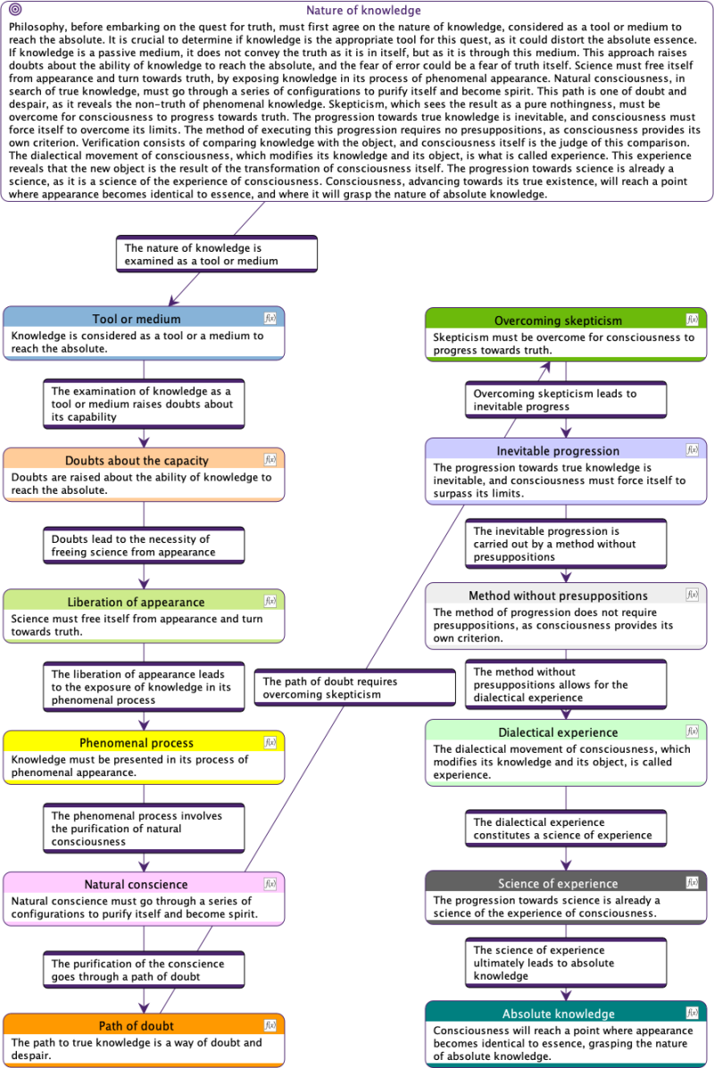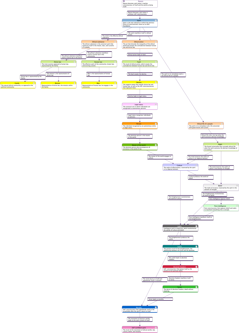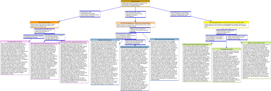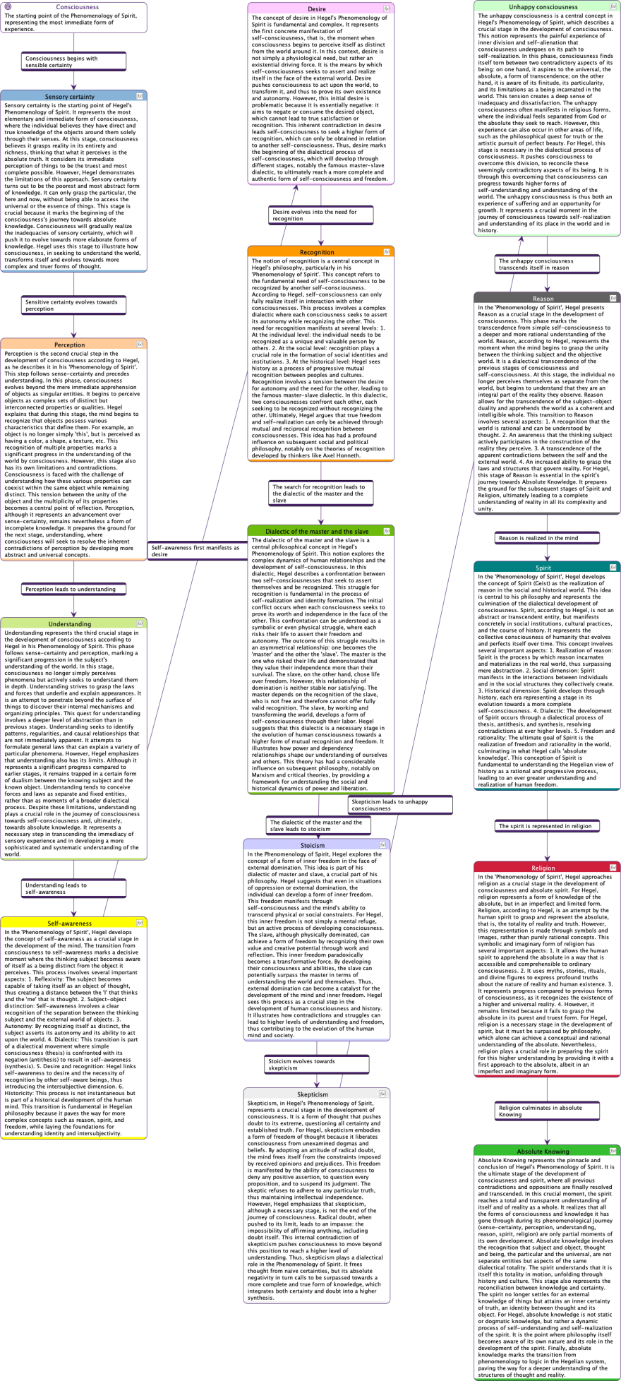 This feature allows us to seamlessly navigate between different levels of complexity. We can thus adapt our reading to the specific needs of our analysis, easily shifting from a macroscopic view of Hegel’s ideas to a microscopic examination of their nuances and implications.
