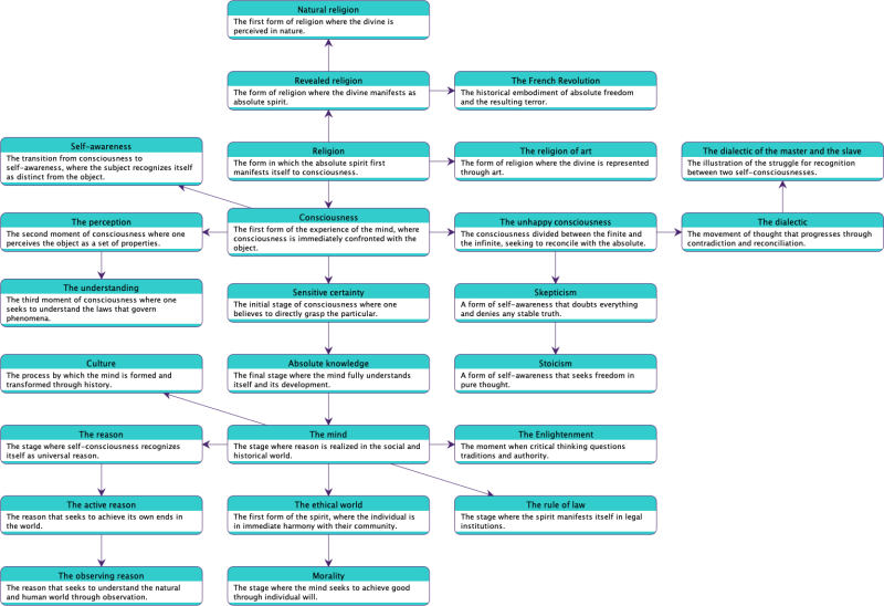This hierarchical approach structures Hegelian thought in an accessible and orderly manner, thus facilitating the understanding of the interconnections and theoretical developments present in the text. By highlighting the essential concepts, we provide readers with an intellectual roadmap to guide their reading and study, making the exploration of Hegel’s often abstract and esoteric ideas less daunting.