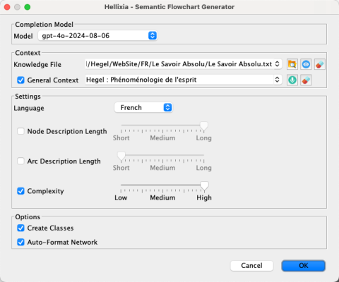 Semantic Flowchart Generatord’Hellixia. - Nous configurons les paramètres comme illustré dans la capture d’écran ci-dessous :