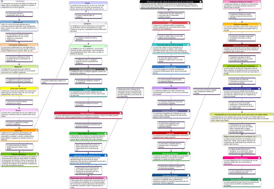 Cette approche hiérarchique permet de structurer la pensée hégélienne de manière accessible et ordonnée, facilitant ainsi la compréhension des interconnexions et des développements théoriques présents dans le texte. En mettant en lumière les concepts essentiels, nous offrons aux lecteurs une carte intellectuelle qui guide leur lecture et leur étude, rendant moins ardu l’exploration des idées abstraites et souvent ésotériques de Hegel.