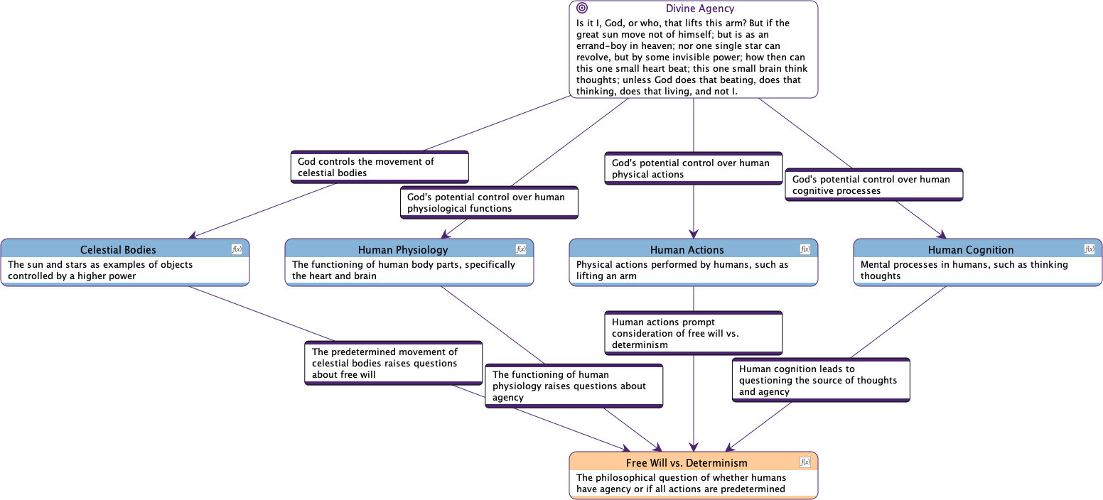 Is it I, God, or who, that lifts this arm? But if the great sun move not of himself; but is as an errand-boy in heaven; nor one single star can revolve, but by some invisible power; how then can this one small heart beat; this one small brain think thoughts; unless God does that beating, does that thinking, does that living, and not I.