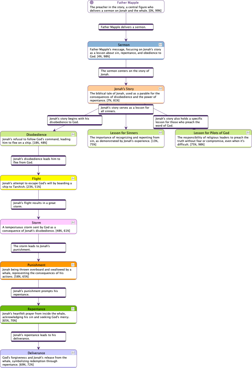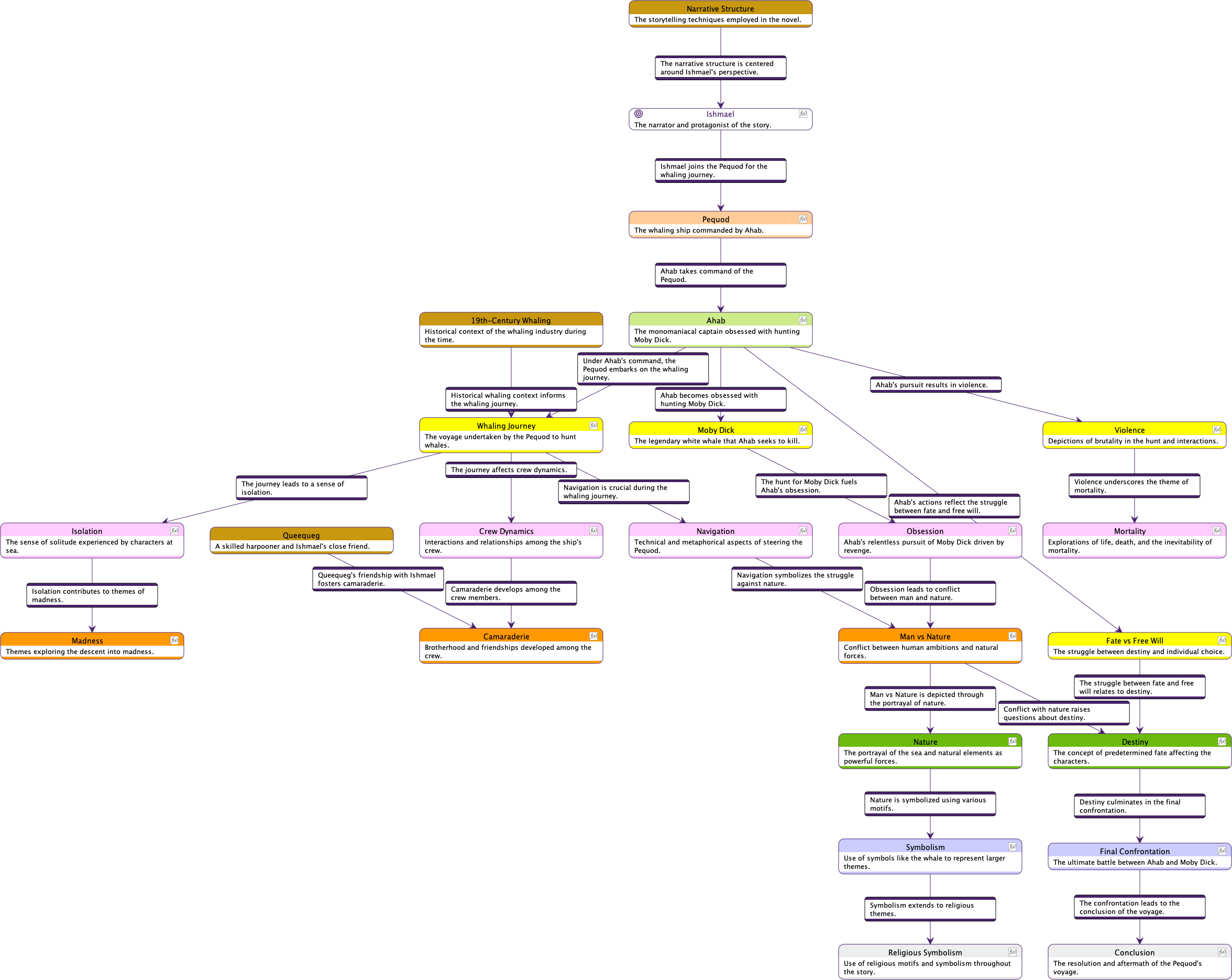 - Semantic Flowcharts illustrating the progression and sequence of key concepts in Moby Dick.