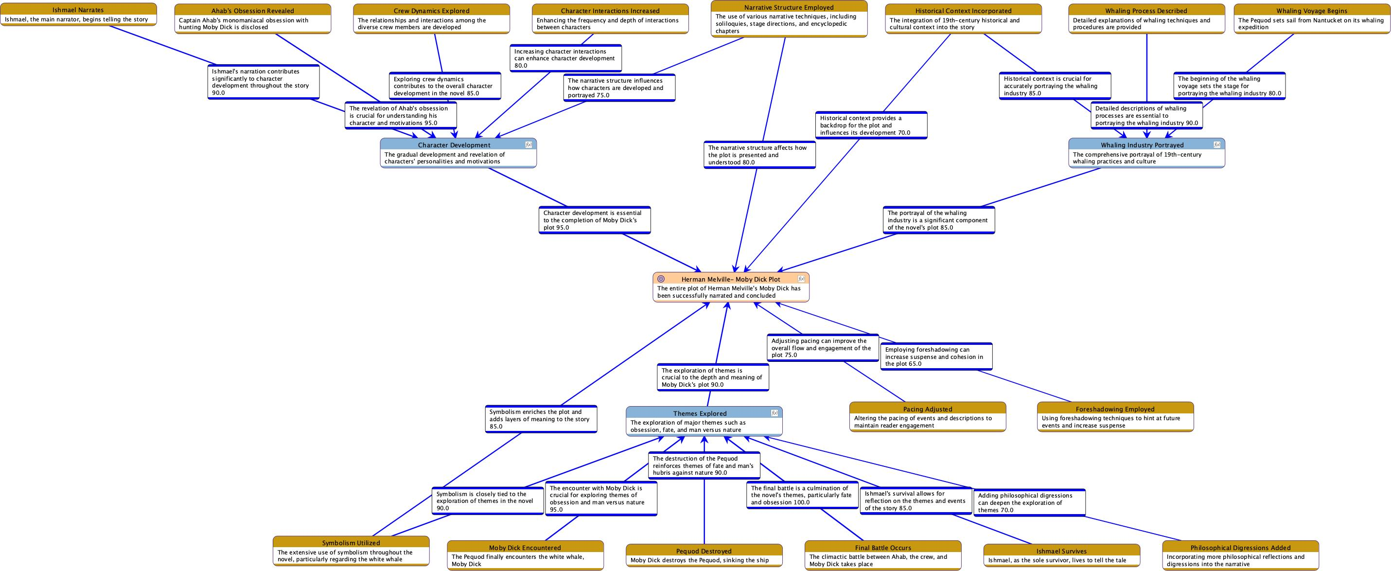 Hellixia then generates a Causal Graph, which outlines the key factors that contribute to crafting a successful narration of Moby Dick.