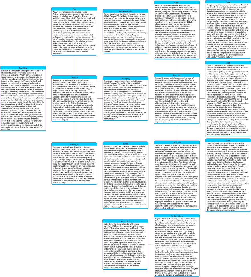 The first step in our exploration of Moby Dick involves identifying the most fundamental elements within the book. We will begin by unveiling the core ideas that shape the narrative, then progressively increase the complexity to gain more detailed insights and a deeper understanding of the novel’s underlying layers.