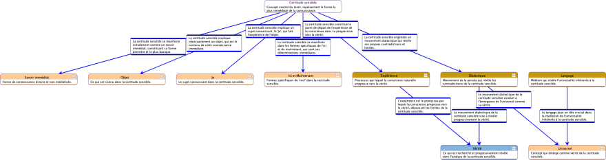 Lors de l’examen du graphe généré, nous identifions une incohérence significative : la relation causale entre “Dialectique” et “Certitude Sensible” semble inversée par rapport au contenu du commentaire associé à l’arc.