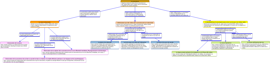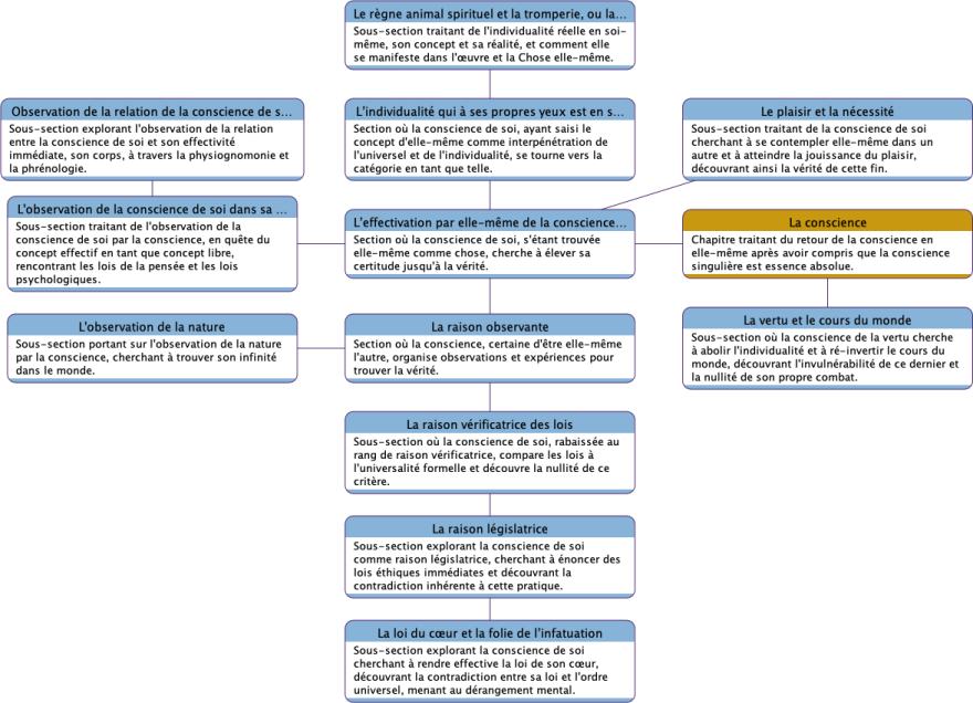 Cette approche hiérarchique permet de structurer la pensée hégélienne de manière accessible et ordonnée, facilitant ainsi la compréhension des interconnexions et des développements théoriques présents dans le texte. En mettant en lumière les concepts essentiels, nous offrons aux lecteurs une carte intellectuelle qui guide leur lecture et leur étude, rendant moins ardu l’exploration des idées abstraites et souvent ésotériques de Hegel.