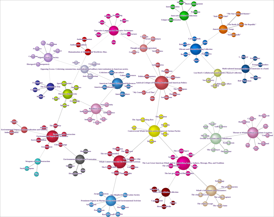 Harnessing Hellixia’s ability to create intricate semantic networks, we aim to dissect the themes, motifs, and narratives hidden within Reed’s lyrics. This song, ripe with symbolism and metaphor, offers a rich landscape for such analysis.