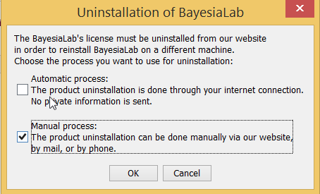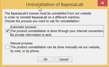 If you do have an Internet connection, select “Automatic process” and click OK to uninstall BayesiaLab.