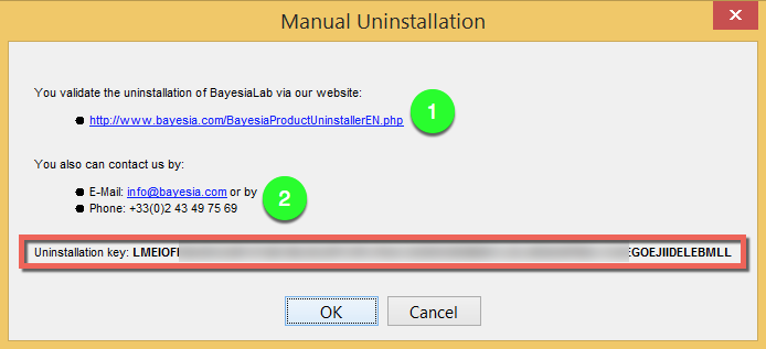 - Alternatively, you can submit your Uninstallation Key to Bayesia by emailing support@bayesialab.com