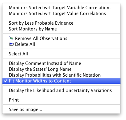 BayesiaLabPrevious ReleasesBayesiaLab 5.0.2Context Menus (5.0.2)Monitor Panel (5.0.2)Copy pageMonitor Panel (5.0.2) Automatic adjustment of the monitors’ width based on the largest monitor displayed. Save as ImageNode - Connect Classes