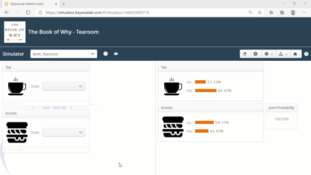 - Then, the WebSimulator automatically infers the probability of Tea=Yes, which is now 80%.