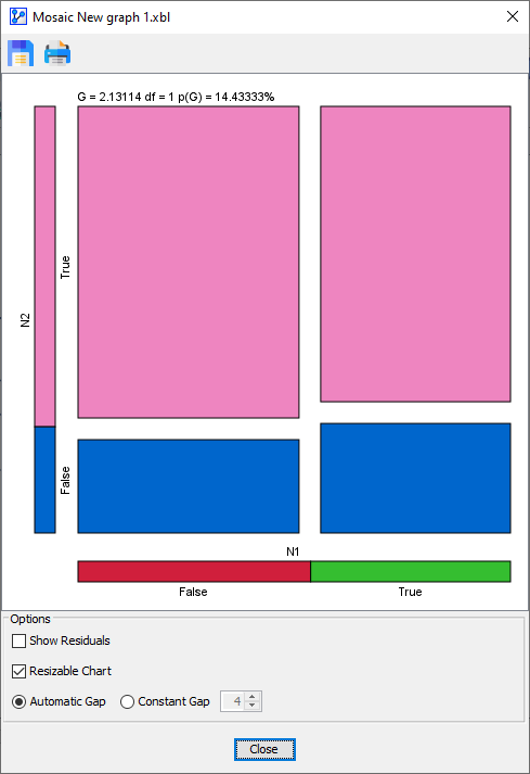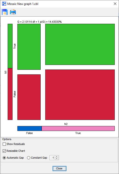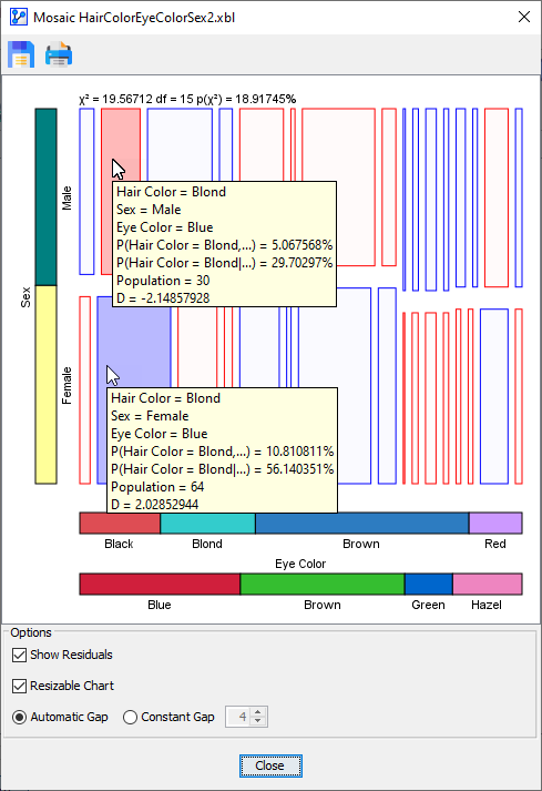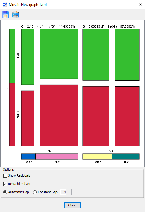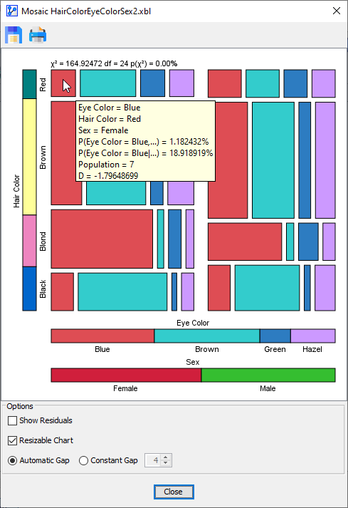 With the Resizable Chart option engaged, you can resize the Mosaic Plot window and the Mosaic Plot itself will adjust automatically while maintaining the proportionality of probabilities and cell areas.