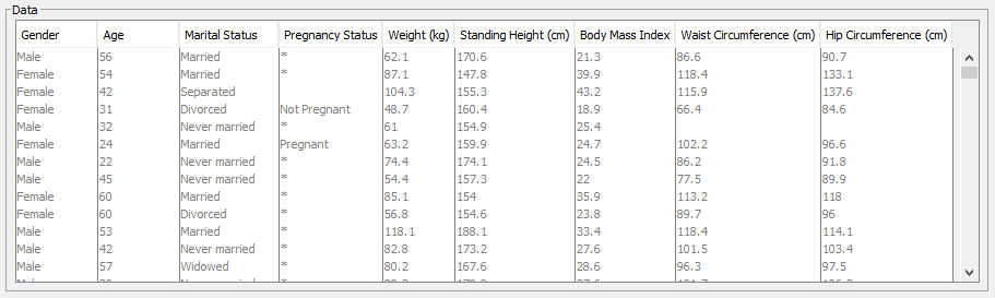 - Asterisks (*) mark Filtered Values. In the dataset shown below, for instance, Filtered Values were assigned to all males and post-menopausal women for the variable Pregnancy Status. For those two groups and for obvious reasons, pregnancy is impossible.