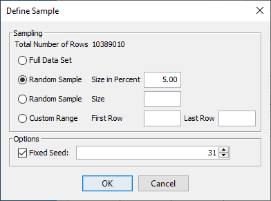 - Random Sample — Size in Percent: specify the size of the random sample as a percentage of the original dataset size.
