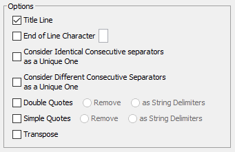 - The Options Panel allows you to manage the interpretation of the dataset to be imported.