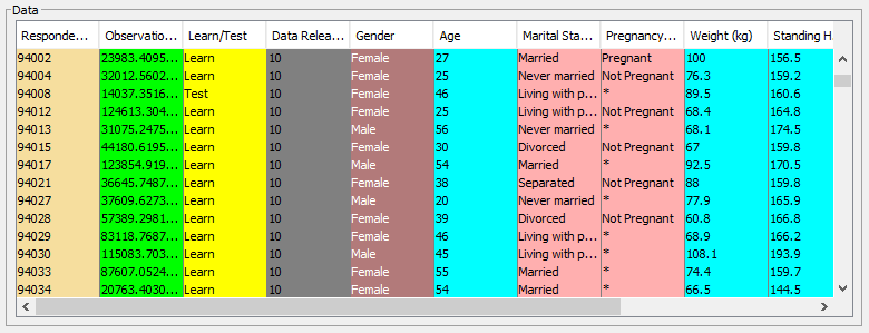 - The Data panel visualizes the current variable selection and type assignment with colors (see Usage above).