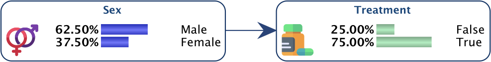 For this example, we use a simple network consisting of the Parent Node Sex and the Child Node Treatment, which have a probabilistic relationship.