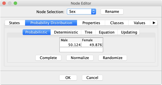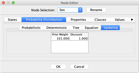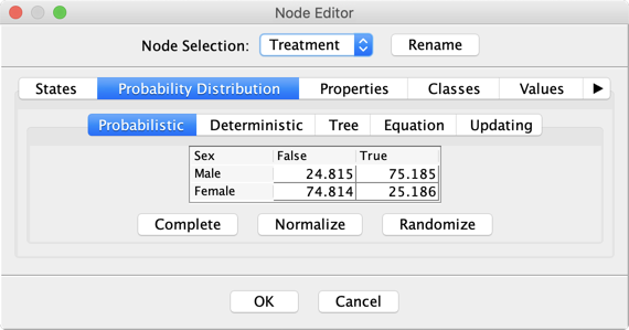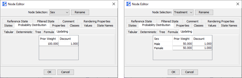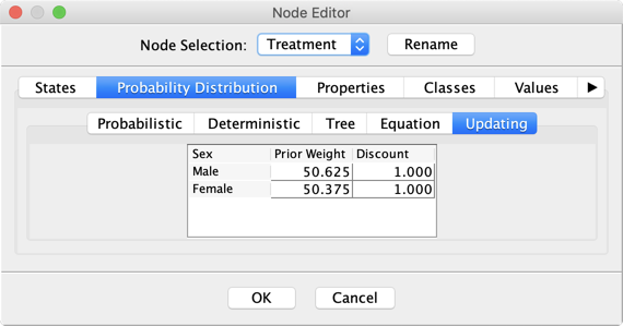 Note that for the Treatment node, only the Male condition was updated. The probabilities and the Prior Weight for Female remain unchanged.