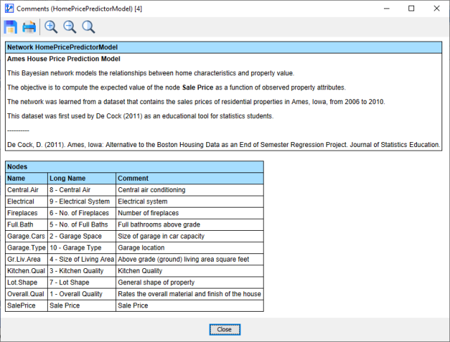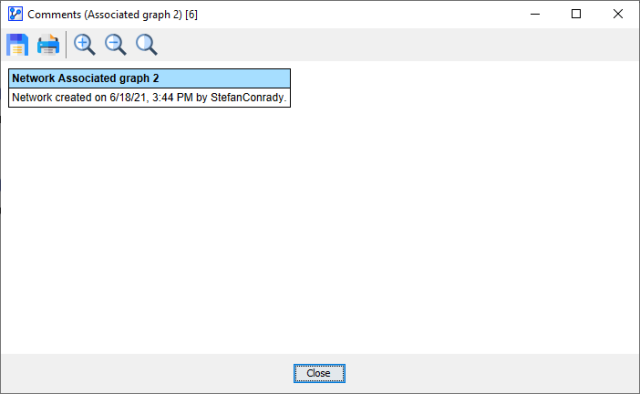The Network Comments window opens, and a typical report resembles the following screenshot.